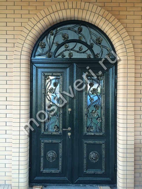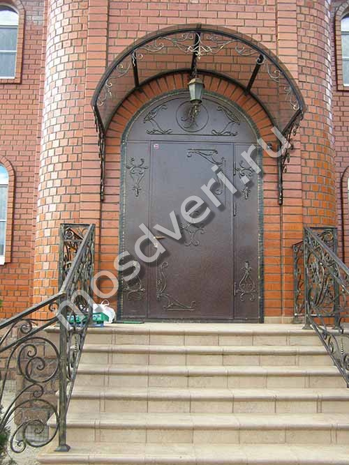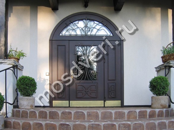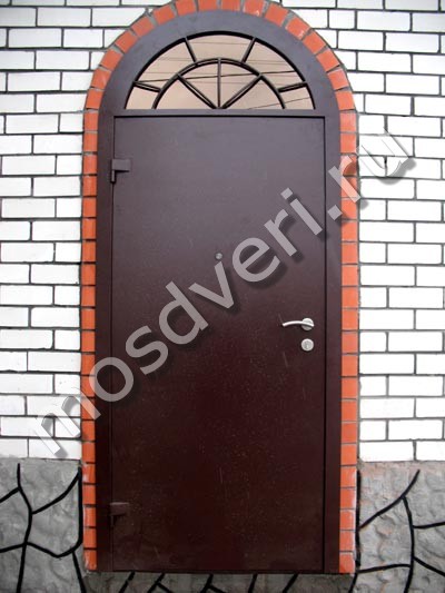 Для изготовления таких дверей на заказ используются различные материалы, но самым надежным признан металл. Железные изделия обладают высокими прочностными характеристиками и долговечностью. В зависимости от габаритов проема металлические арочные двери могут быть одно- или двустворчатыми. Существует три вида стальных конструкций: